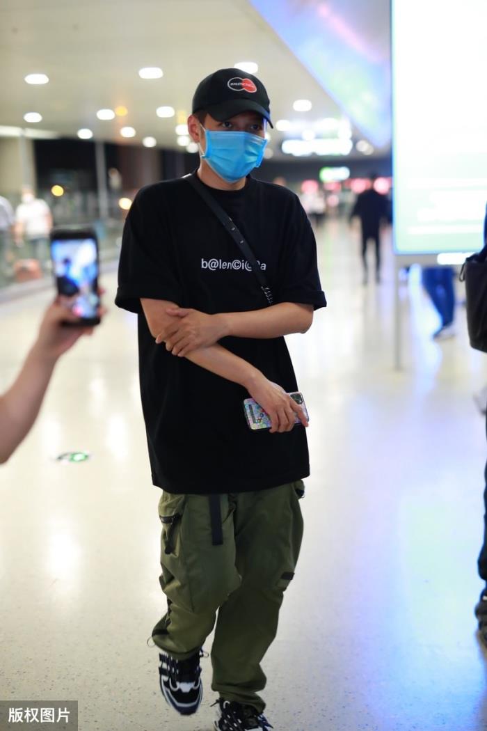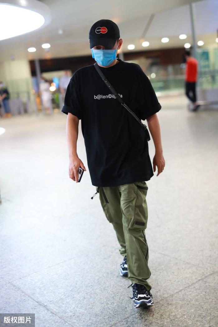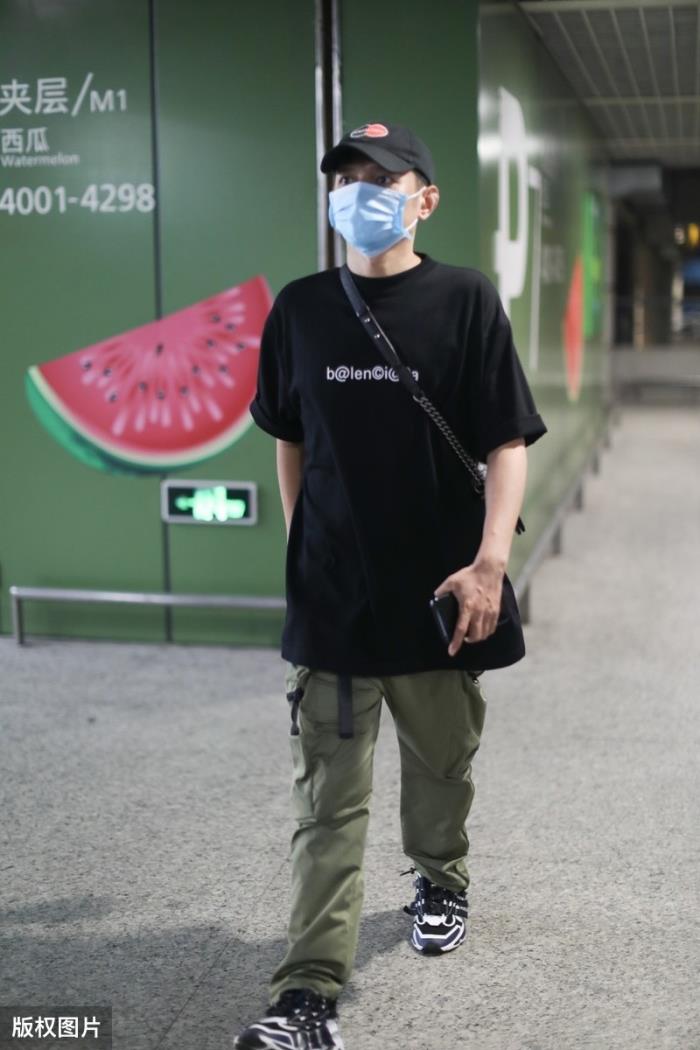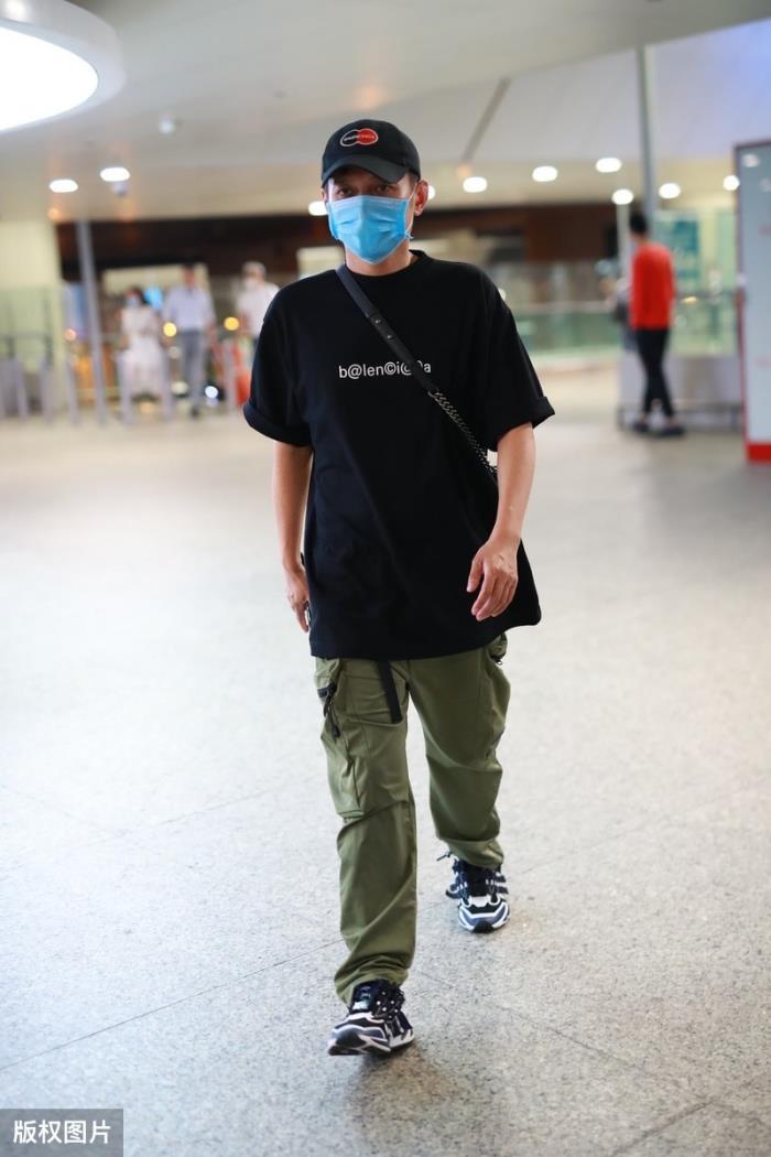 李维嘉本身也是属于比较纤瘦的体型,所以再加上选择黑色的T恤来搭配后,黑色的显瘦功效让人看起来也是瘦不少,好在衣服为微宽松的版型样式没有紧贴着肩膀搭配,也让上身搭配缓和很多,没有将纤瘦的原始体型暴露出来;
