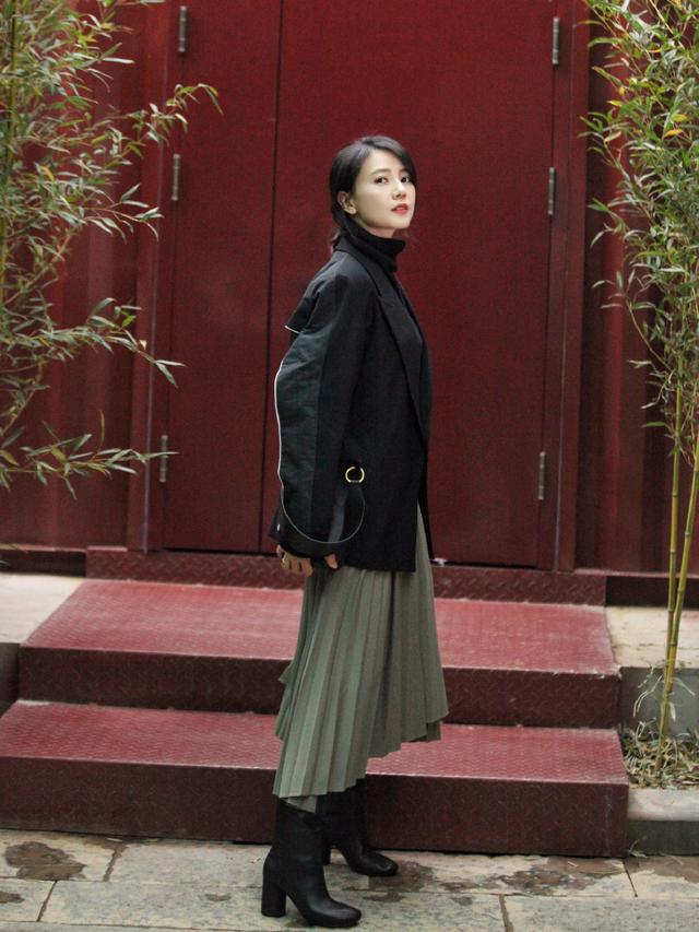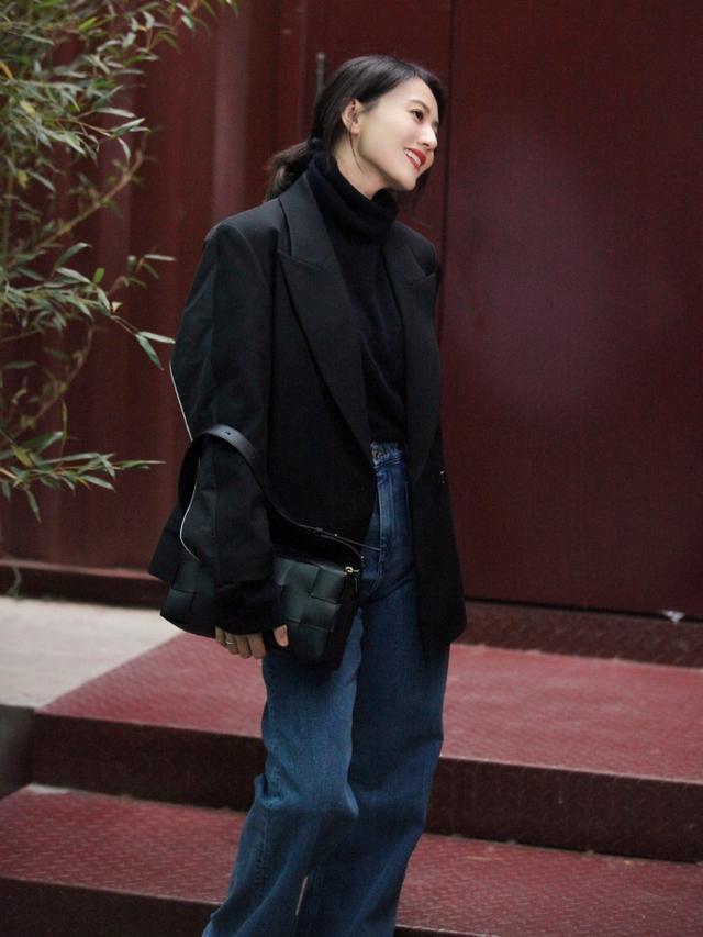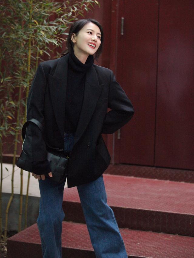 工作室晒高圆圆今日 Look 西装上衣搭牛仔裤优雅干练