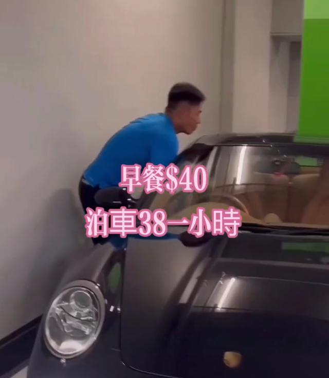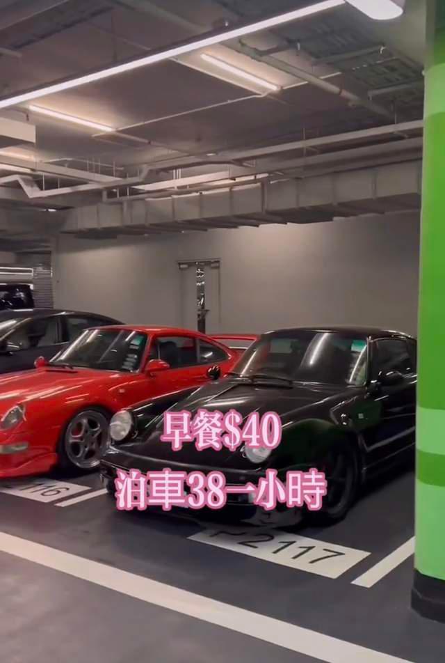 随后,他来到一个环境较好的停车场,里面停放着各种豪车、跑车,每一辆都价值不菲。这里的停车价格是 38 港币一小时(约 35 元人民币),比内地很多城市的要贵一些。
