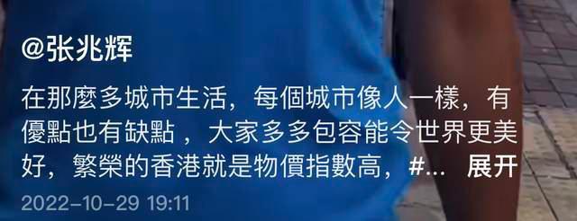 10 月 29 日,知名港星张兆辉发文感慨香港的物价太高了,他很想念在内地的日子,此事引起网友热议。