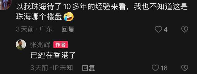 当时有网友以为他仍在广东珠海,张兆辉回复称他已经回到香港了。