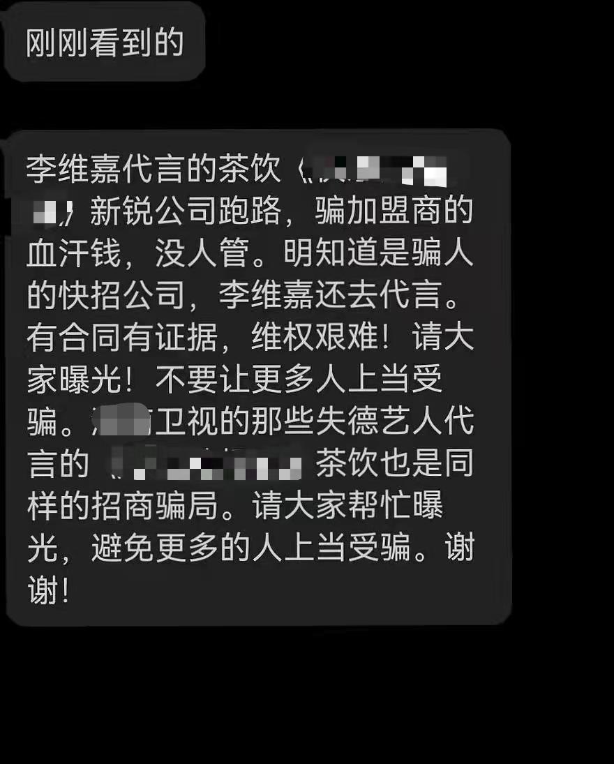 受害者们坚持称李维嘉在明知道该公司有问题的情况下还去代言,暗指他和企业相互勾结,欺骗加盟商,要求李维嘉给一个说法。