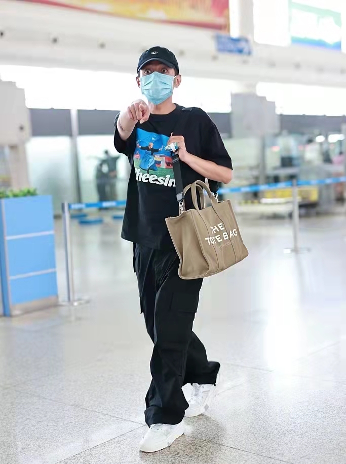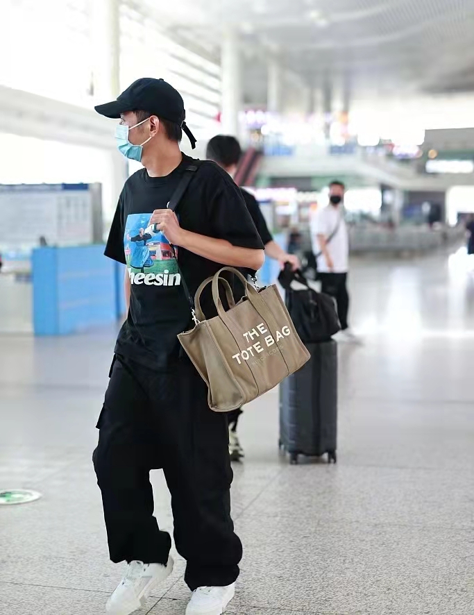 在被曝光的机场照片中,李维嘉穿着黑衣黑裤,头上戴着一顶黑色的鸭舌帽,背着棕色的帆布包,相当低调。