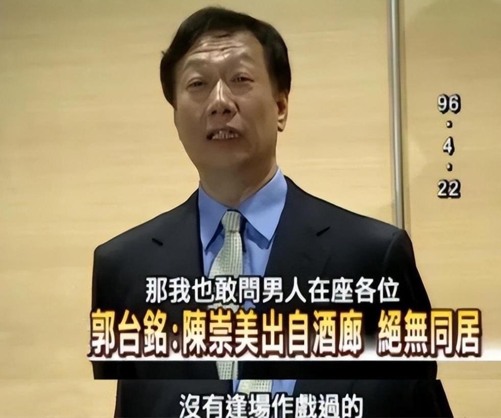 就在一切顺顺利利时,郭台铭却背着妻子与证券公司女职员陈崇美发生婚外情,二人同居三年,女方曾为男方拿掉三个孩子,后来男方有意疏远,女方不甘心,分手时设下圈套录音录像,事后找上原配妻子敲诈五百万分手费。