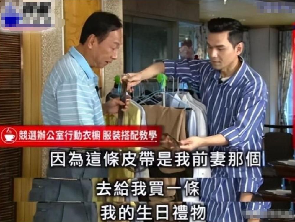 2019年,郭台铭有意参加国民党选举,为了拉取到更多选票,他再次在大众面前塑造深情男人形象。将多年前妻子赠送的皮带公之于众,告诉众人他一直舍不得扔,觉得皮带在妻子还在身边。