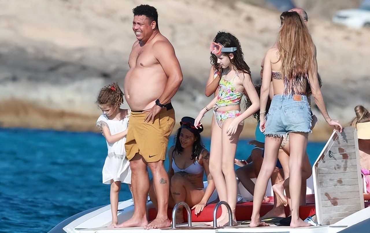 北京时间4月8日,近期,有媒体拍到的足球巨星罗纳尔多(大罗)度假的照片中,同行有他29岁的嫩模女友和四个女儿。大罗登上皮划艇,脱下外套的那一刻,身材缺陷暴露无遗。整个身材大腹便便,大肚腩相当突出,裤子差点提不上来,和他之前身材外形相差巨大。与旁边的身材高挑嫩模女友以及肤白貌美的女儿相比,形成巨大反差。