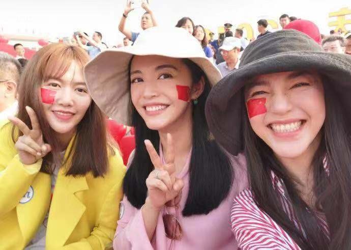 行业领军人物谭维维、姚晨等女明星也被邀请在天安门广场观看阅兵盛况,她们都在自己的脸上印上了五星红旗标志,为祖国的繁荣、强大和团结打call。