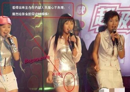 张含韵在参加某电视台举办的晚会时,就被偷拍过裙底,节目中张含韵趴在轿车上,摄影机不拍别处非得对着她的一双白腿拍,而且角度非常低。之后,张含韵穿着短裙在舞台上热舞时,由于镜头太低,她做动作时也很明显地走光了,即使这样,导播也不切换镜头。