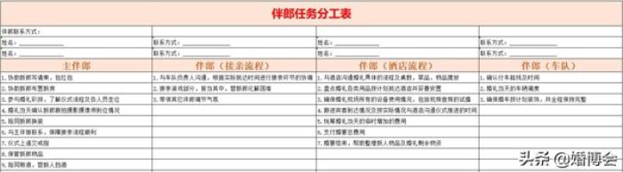 伴郎任务分工表