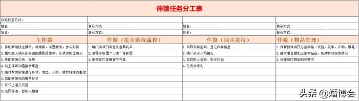 伴娘任务分工表