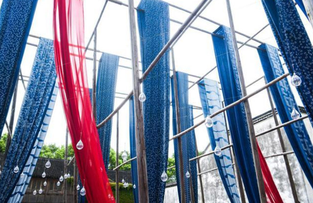 草木本色染坊里有着乌镇独有的的蓝印花布,很多长长的花布高高的挂在架子上,它们随着风缓缓飘动,看起来真的非常美好,不仅如此,来到草木本色染坊还可以学一学扎染,喜欢拍照的朋友们也不能错过,这是一个拍照的好地方。