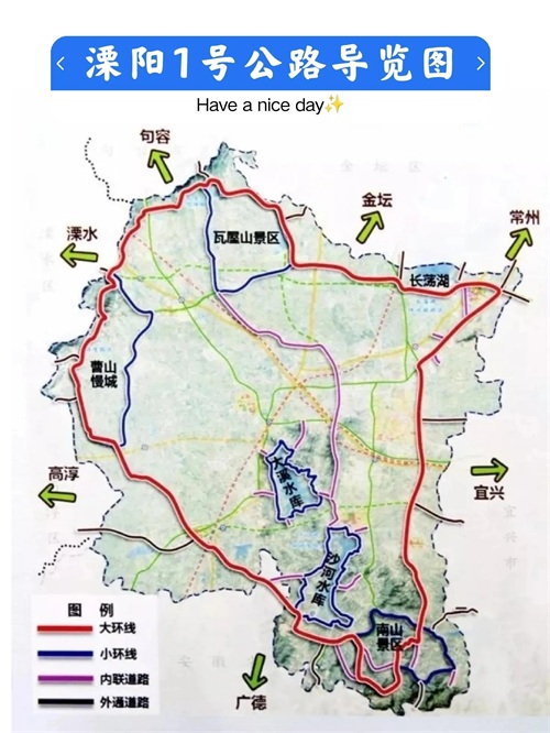 旅游节点:天目湖、十思园、三胜村、平桥石坝、松岭驿站、竹海漂流等等