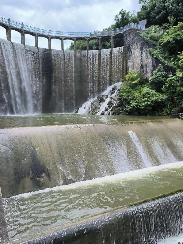 大坝上面是一个水库,下面是一个绵延很长距离的小溪,可以带孩子玩水、捡石头,夏天溪水冰爽,非常解暑。