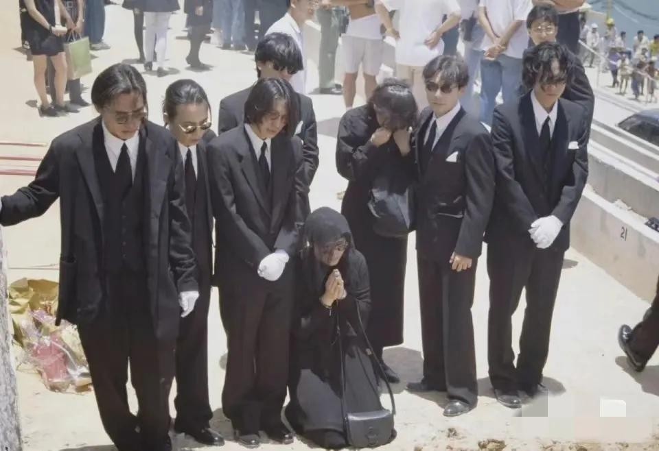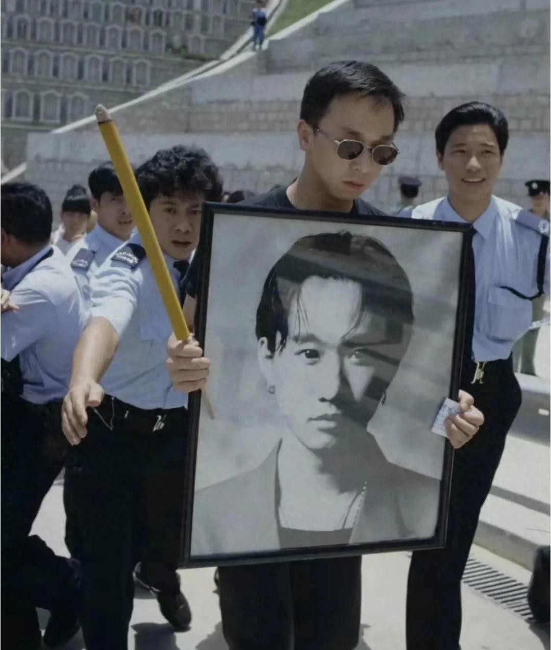 1993年,黄家驹的葬礼,弟弟捧着遗照,有人跪在地上哭,哀荣备至