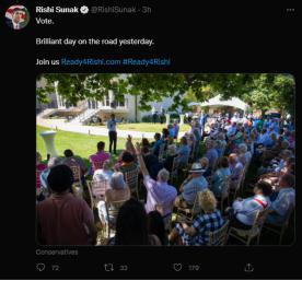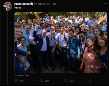 北京时间 13 日下午 16 时许,苏纳克在推特发文:" 我们(是)"。↓