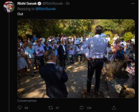 英国前财相苏纳克“大喘气”发推:“我们(是)”,引网友接话:蠢货……