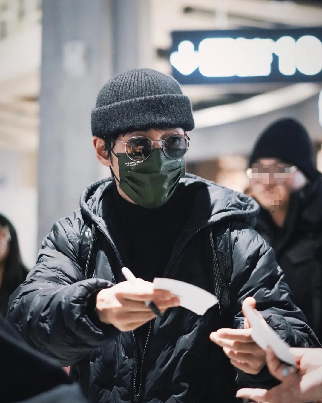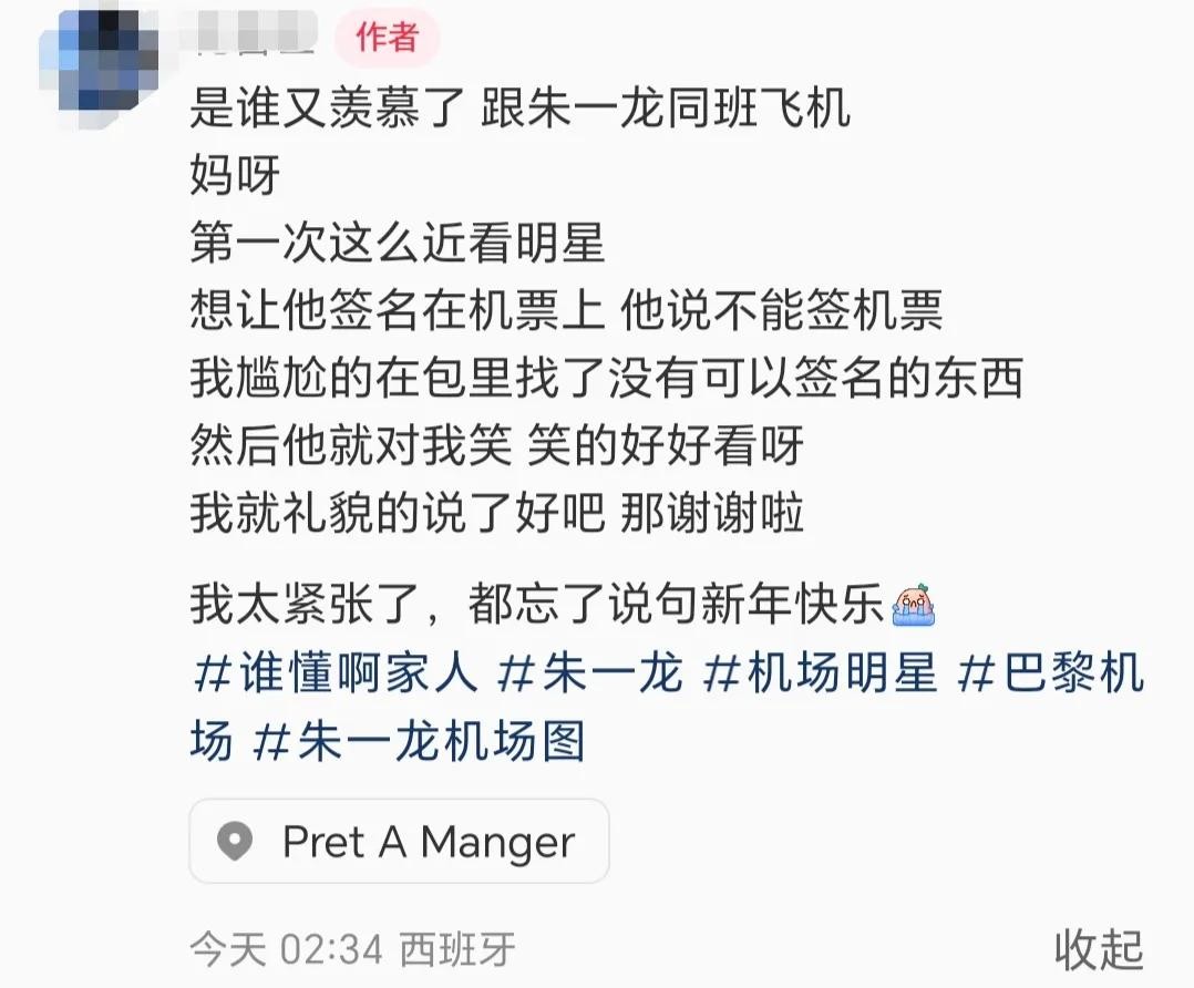 同日凌晨2点多,有多位网友也遇到了他。其中一位网友表示,跟他同班飞机,第一次近看明星心情很是激动,找他签名但找不到可以签名的东西,他就对着网友笑了笑。