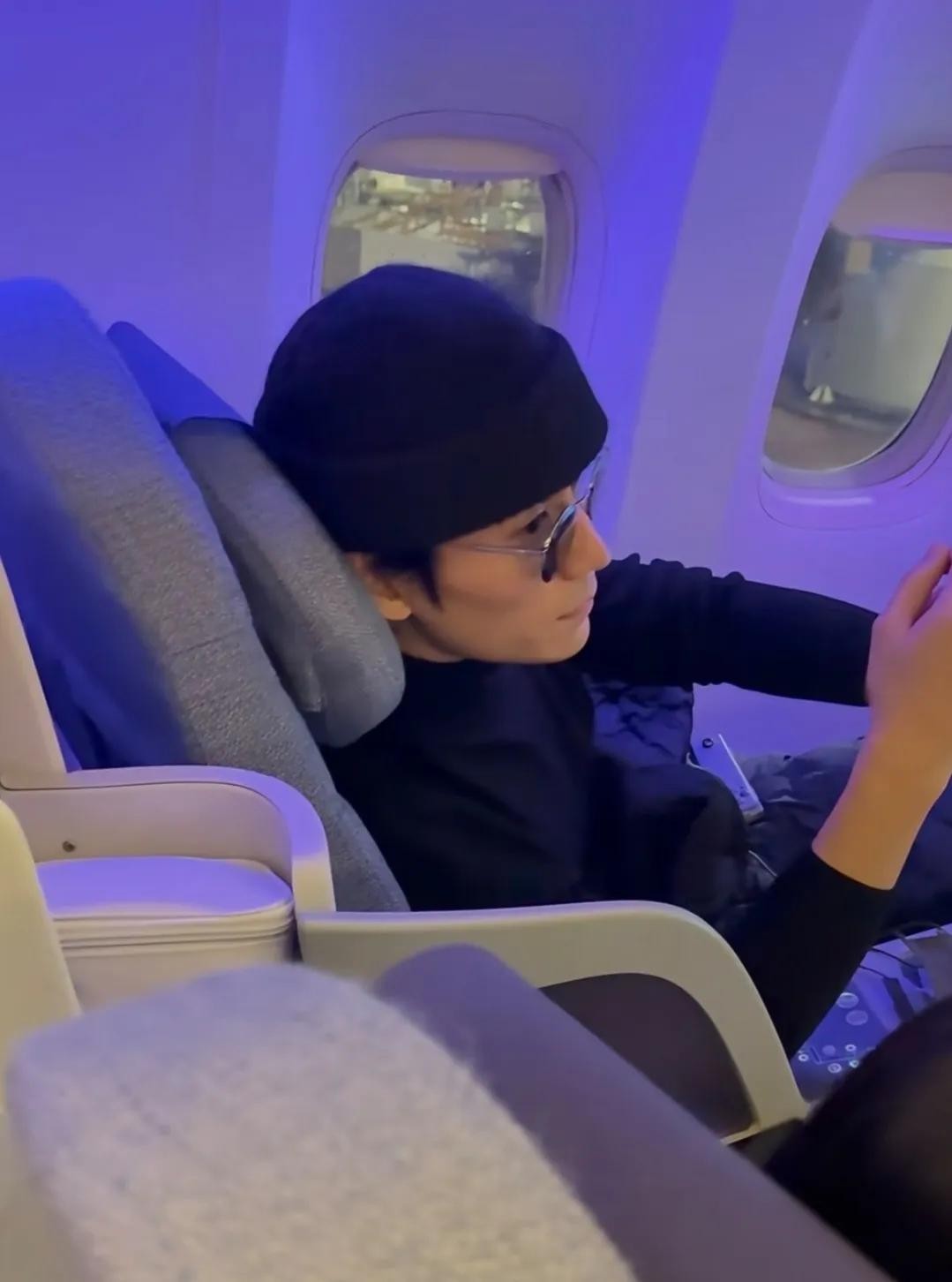 该网友还分享了一段视频。视频显示,上了飞机的他脱掉了外套,端起一杯水喝了起来。这个角度看,他的颜值真的是无可挑剔。