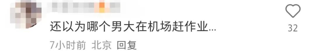 对此,有网友调侃“还以为是哪个男大在机场赶作业”,哈哈哈。