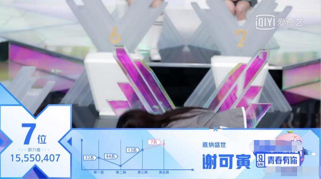 第七名:谢可寅,票数:15550407票。后来居上的她,在最新一次舞台表演rap让人印象深刻。