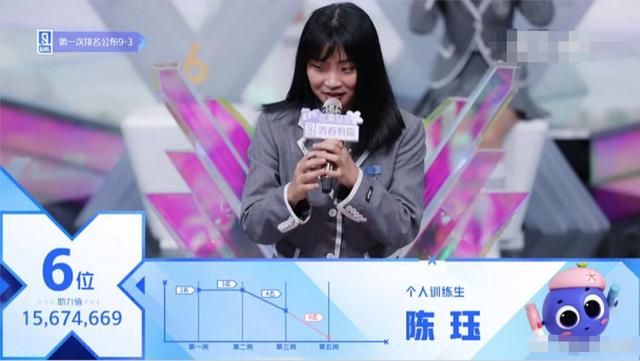 第六名:陈钰,票数:15674669票。以个人训练生的身份参加此次选秀,能够有这样的成绩非常不错了。