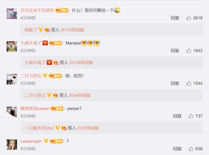 发文仅5分钟,评论就超过了3万条,有的网友表示不愿意相信,但也有粉丝留言表示祝贺。