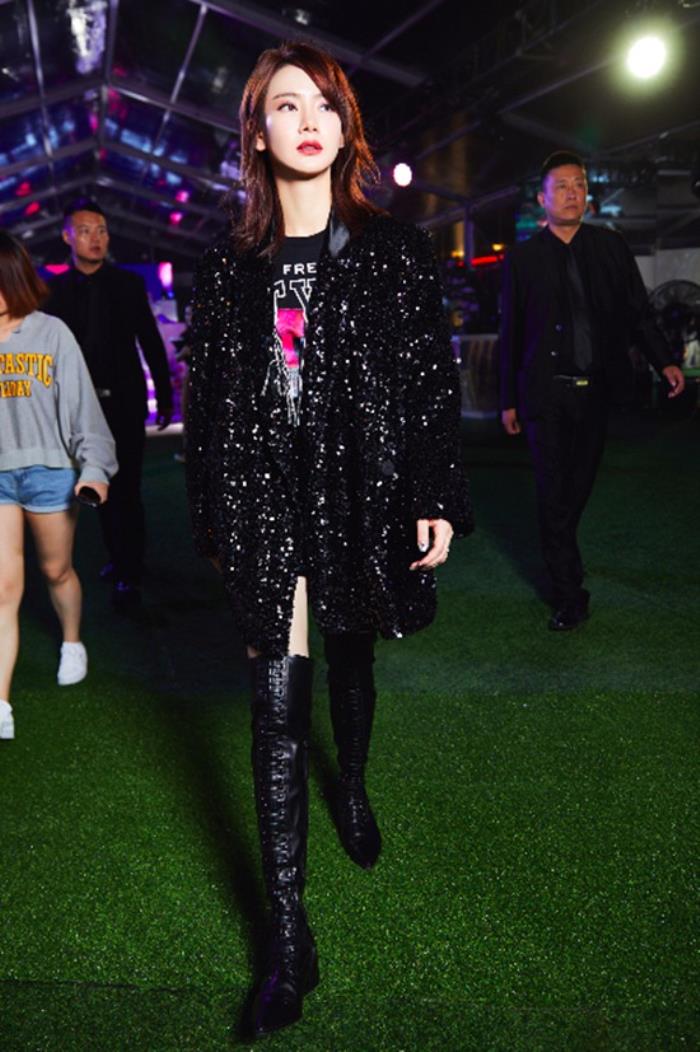 一起亮相的知名演员戚薇,穿上TATA秋冬女神系列维多利亚长靴助阵活动,搭配亮片外套,帅气中带点性感,完美展现长腿及个人气场,女神范十足!