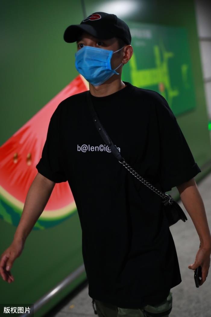 李维嘉本身也是属于比较纤瘦的体型,所以再加上选择黑色的T恤来搭配后,黑色的显瘦功效让人看起来也是瘦不少,好在衣服为微宽松的版型样式没有紧贴着肩膀搭配,也让上身搭配缓和很多,没有将纤瘦的原始体型暴露出来;