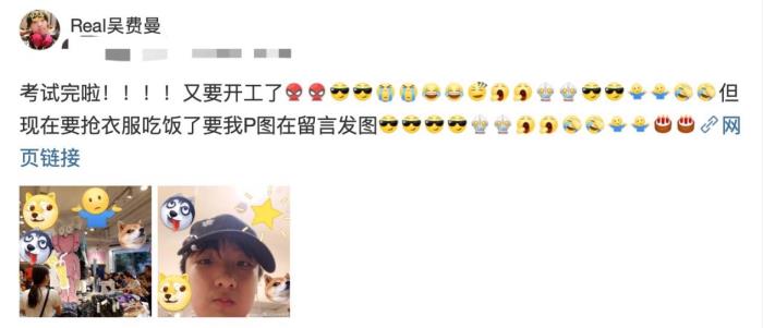 他曾在社交平台上分享自己的p图照,并配文:"考完试了,又要开工了。"言语十分幽默。