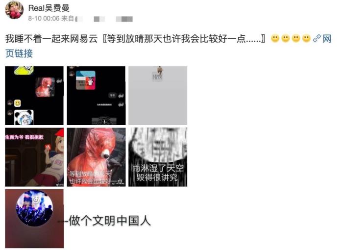 8月10日,费曼分享了自己睡不着听的歌曲,竟然有吴镇宇等人唱的《做个文明中国人》。现在的费曼和吴镇宇的关系比起参加节目的时候,可谓是截然不同,不仅亲密了许多,还处成了兄弟。