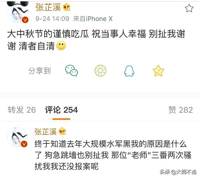 两人的关系成为网友热议焦点,风波微博,张芷溪又被吴秀波事件所牵连。