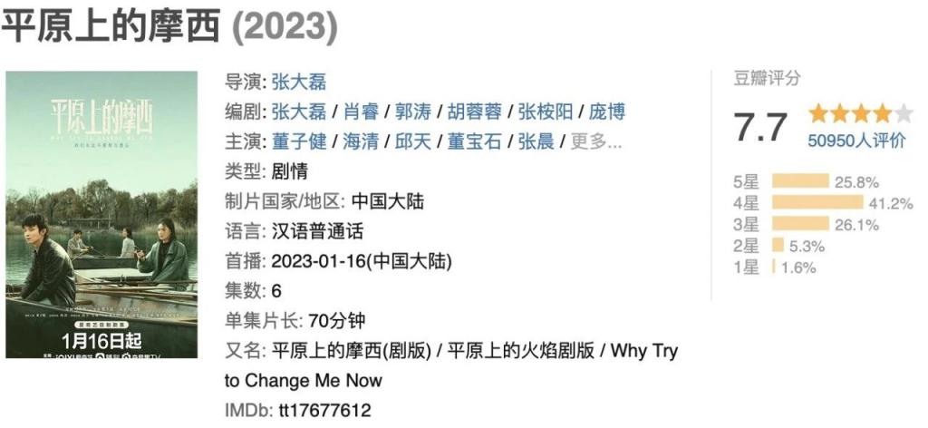 豆瓣 7.7 分的《平原上的摩西》虽流量不比前者,却顺利入围柏林国际电影节剧集单元,成为首部入围此单元的华语剧集,这张成绩单是足份足量的。