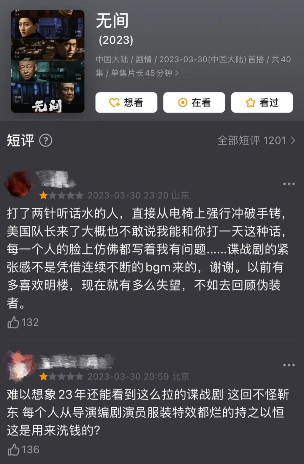 随着《无间》播至第 8 集,豆瓣短评区已经被 2-3 星占据。