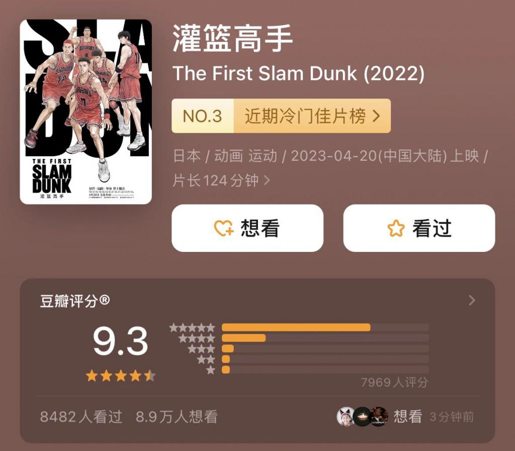 《灌篮高手》零点预售票房突破 454 万,成为中国电影史动画片零点场票房冠军。