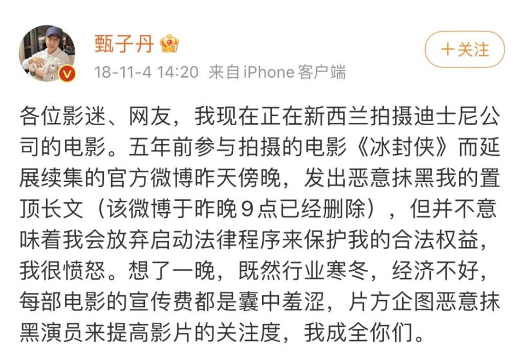 官微发出一封致歉书,甄子丹也勉强算是正名了。