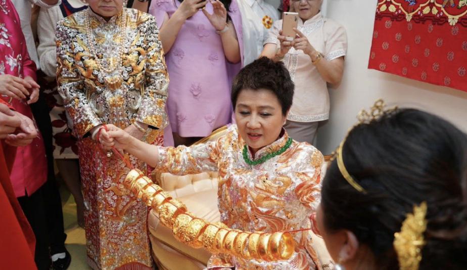 简单几个手镯和一个金项链充满喜气,却不会像其他有钱人那样挂得满身都是。