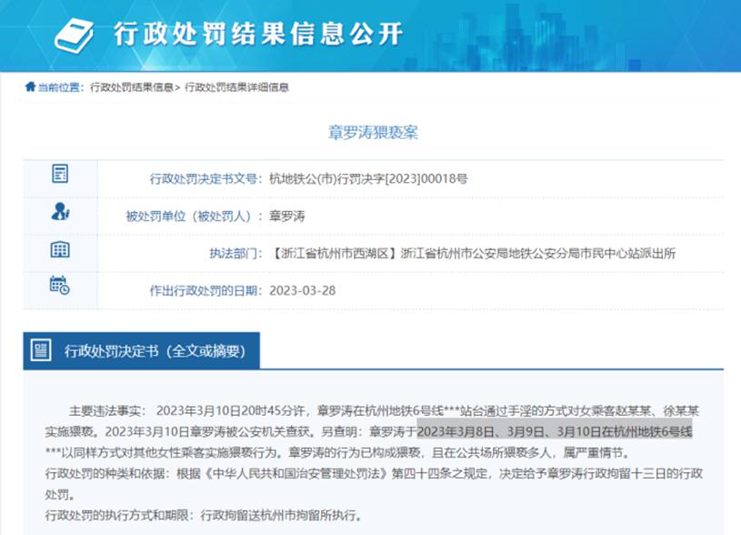 近日,杭州政府在网上公布了一批行政处罚的信息。