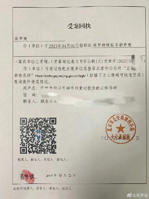 蒋梦婕的经纪人也收到了勒索邮件: