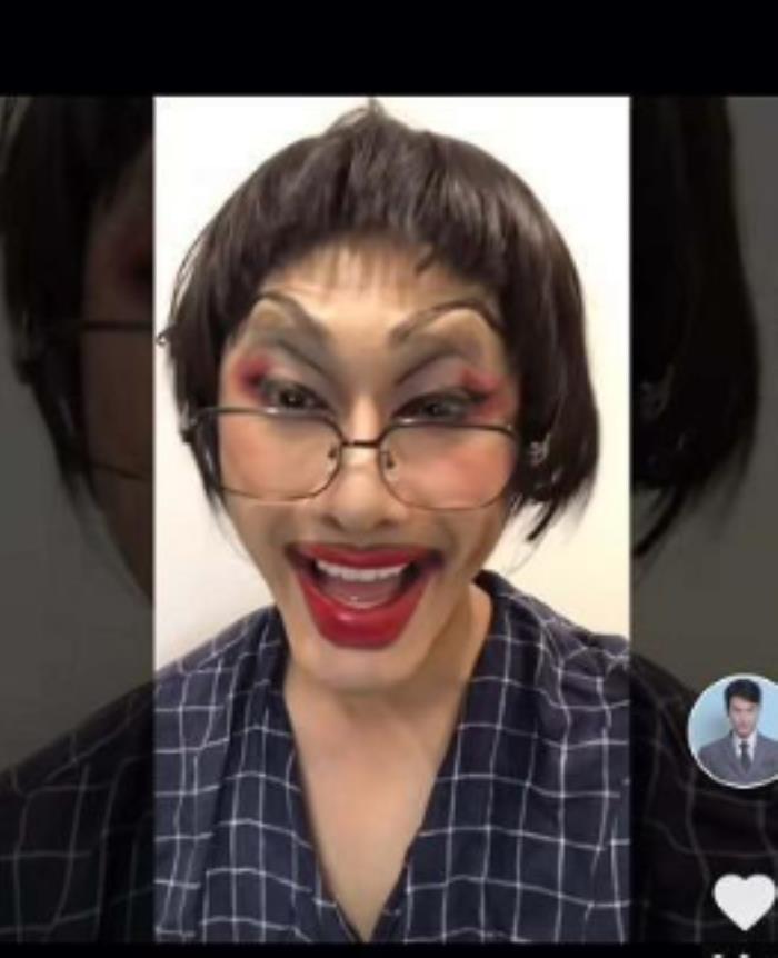 还有模仿网红韩美娟,脸上涂满化妆品,表情夸张台词浮夸。