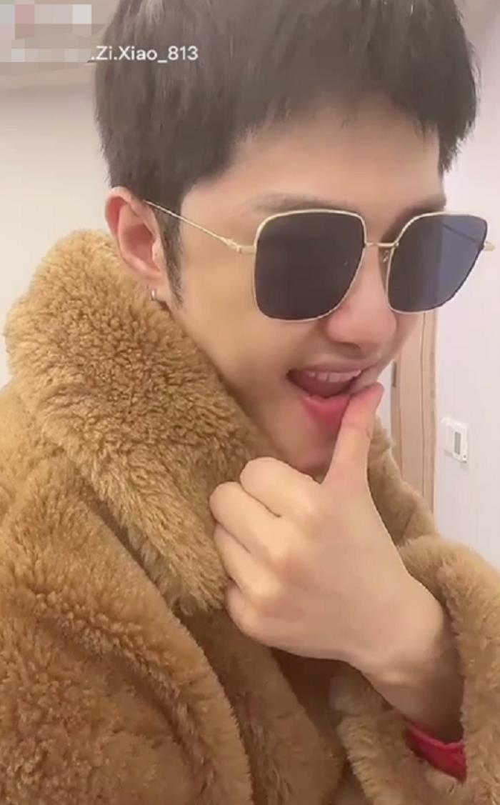 视频中朱梓骁戴着墨镜穿着“貂皮大衣”,里面还搭了一件红色打底,一开始他配了一首霸气的bgm,用拇指抹嘴唇看起来气场很足。