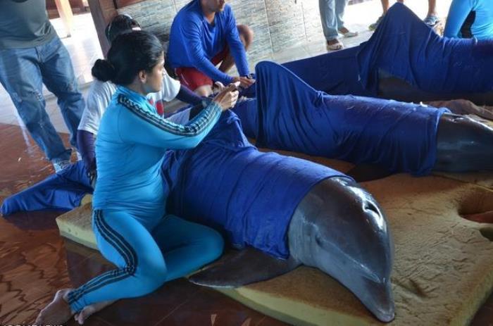 4.飓风尚未来袭,海豚疗养院的工作人员便开始为海豚的搬迁做准备。