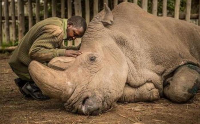 2.它是世界上最后一头雄性北白犀牛,他有一个好听的名字叫做“苏丹”,2018年3月27号它永远的离开了这个世界,它的逝世昭示着整个族群的消亡。