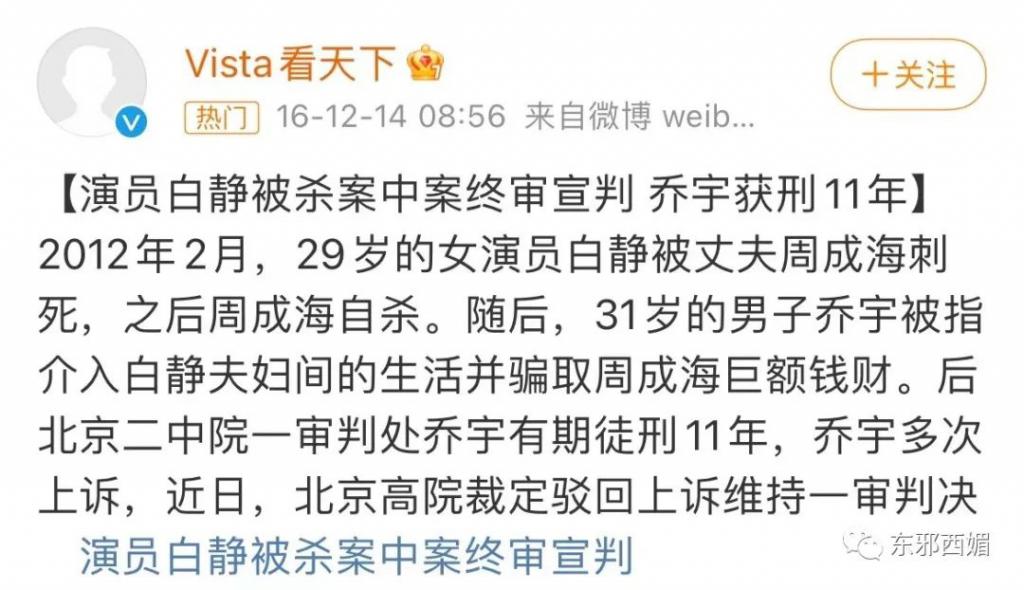 结婚两年后,2012 年,29 岁的白静被丈夫周成海刺杀身亡,随后周成海自杀。