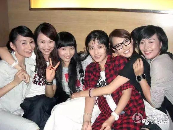 唐嫣大学时跟班里男生女生关系都不错,图片左起是中戏 02 级的张倩、黄雪莹、白静、徐百卉、唐嫣、杨晨。