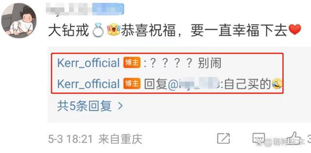 实际上,叶珂的出局应该比外界意识到的更早,叶珂的闺蜜之前就透露叶珂失恋了,叶珂本人也在 5 月初回复过网友,提到钻戒是自己买的。