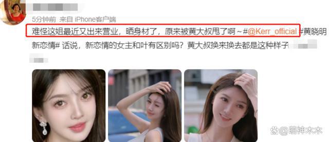 目前,baby 和黄晓明本人都还没有回应,只有 baby 助理出面发文,否认了 baby 新恋情,声称 baby 单身,黄晓明这边最先有反应的人更有意思,正是他的前绯闻对象网红叶珂,她又是出走美国又是频繁晒身材,多少有点 " 意料之外、情理之中 "。