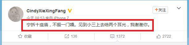 然而,这对 " 金童玉女 " 的感情也曾经历过背叛。就在众人把焦点放在谢杏芳的身上时,以为两人会离婚时,谢杏芳选择了隐忍,选择了原谅自己老公林丹的行为。她曾社交平台上发文:" 宁拆十座庙,不毁一门婚。"