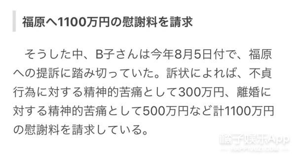 8月,男友前妻便已经提告,要求她赔偿精神损失费费1100万日元。(折合54万rmb)