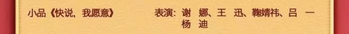 无缘央视春晚,谢娜和鞠婧祎却双双登陆央视元宵晚会的舞台。他们的小品《快说,我愿意》也终于有机会与观众见面了。