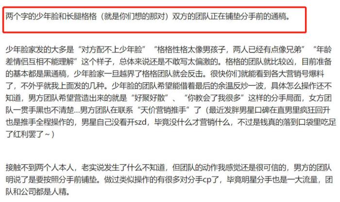 也有网友对隔三差五的分手爆料感到麻木,调侃道:“他俩公布恋情的第一天就有人编好了分手的通稿!”